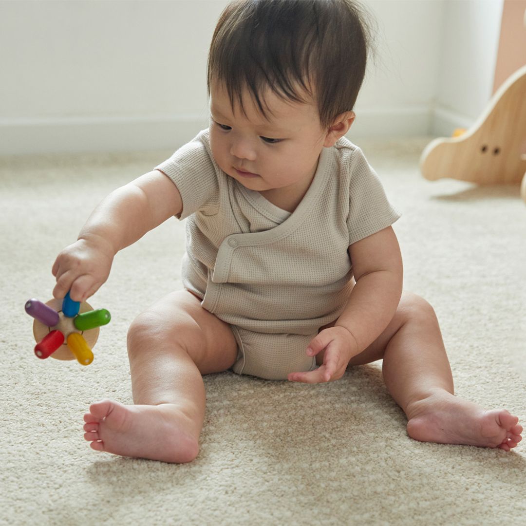 The PlanToys Flexi Jellyfish is designed to fit in a child's palm. The design inspiration comes from jellyfish and how they effortlessly glide through the water. The fun legs wiggle and splay as they are pinched, pushed, pulled and pressed on. Little ones will enjoy manipulating the legs as they develop bilateral integation and coordinated motor skills. Babies learn by touching things. The Flexi Jellyfish will give them something to clutch and constantly manipulate for enjoyment and learning.